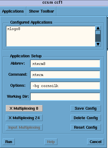 The applications button is used to configure and launch X-based applications into the ccsm.